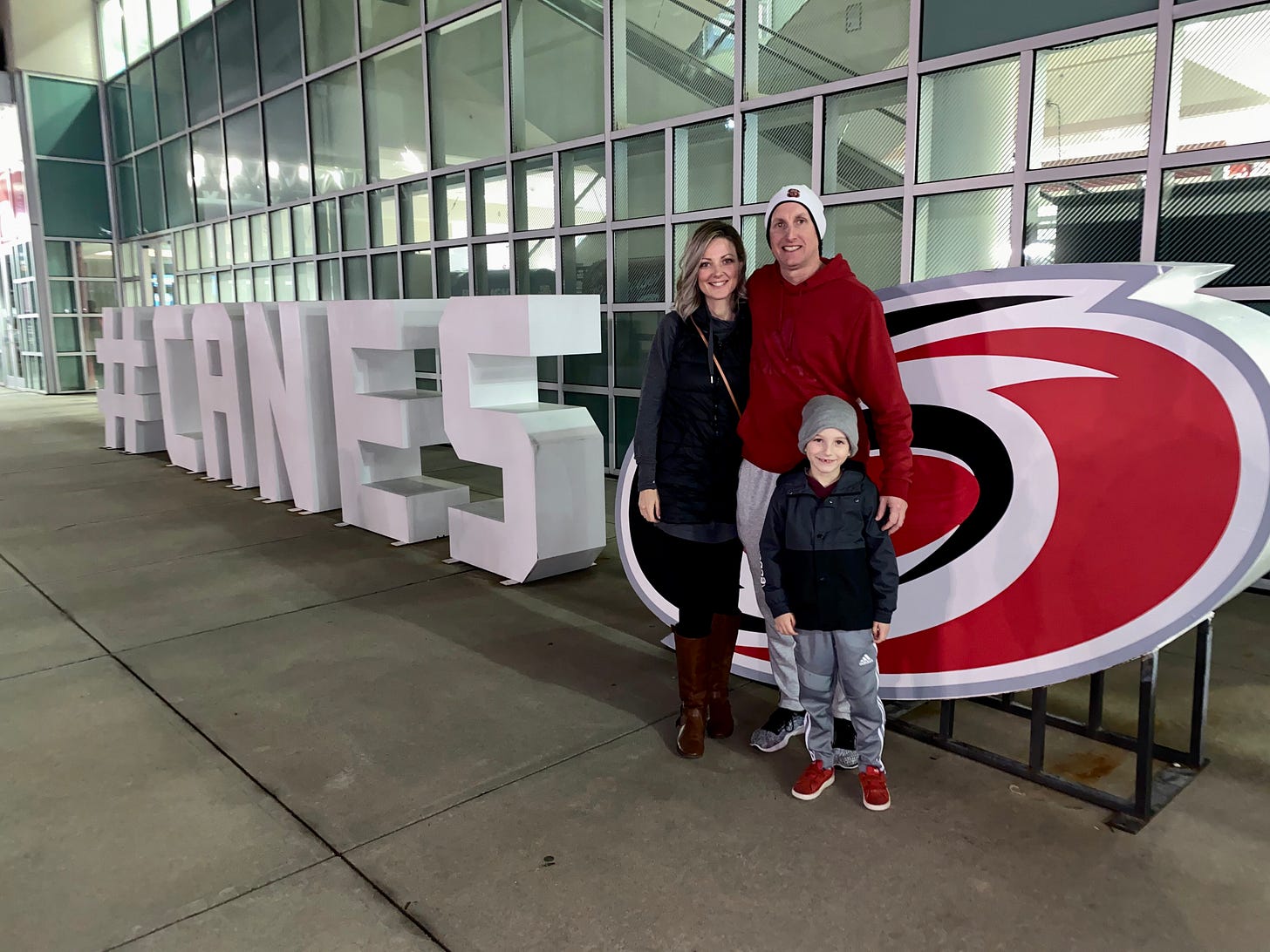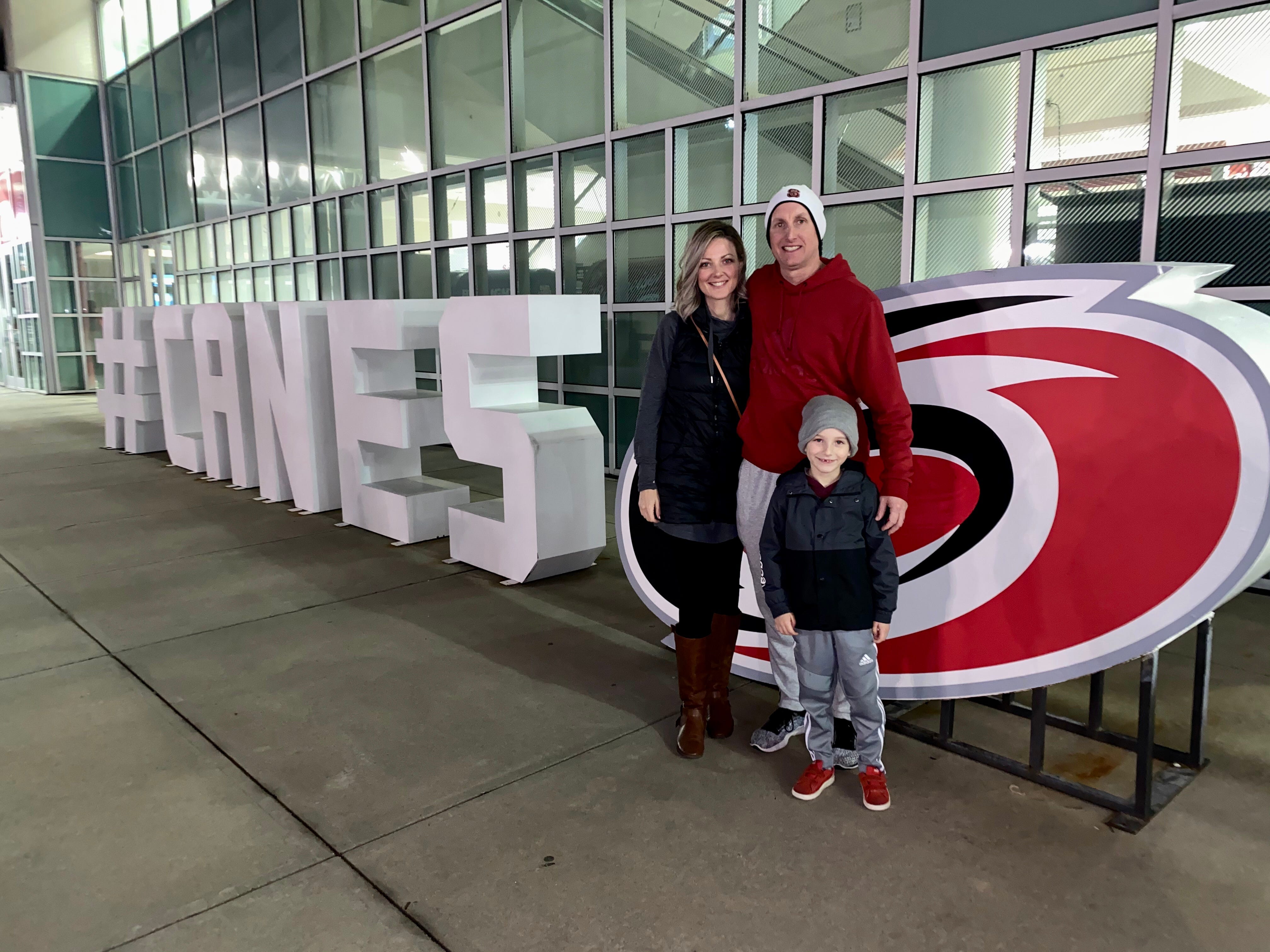 For me, it is this not so remarkable snapshot taken in February of 2020 outside a Carolina Hurricanes game with my husband and youngest child.